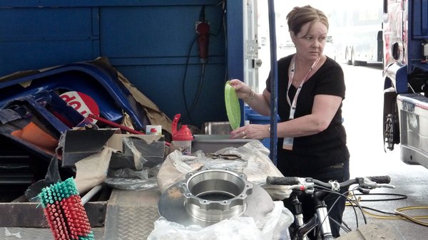 Pista a kép alapján megállapította, hogy a magasabbik bácsi Dave Phillips. Ő az Öhlins gyári futóművese, aki még Ari Vatanennek és John Surteesnek dolgozott. Jó arc és van tudás a fejében, érdemes vele dumálni. Én viszont franciául próbálkoztam szóba elegyedni ezzel az emberrel és sikerült. Szóval most nem tudom. A lényeg, hogy hamar elhárította a hibát, így én és Lacko szabadon távozhattunk a bokszutcából a fantasztikusan herregő és szuszogó teherautóval.
