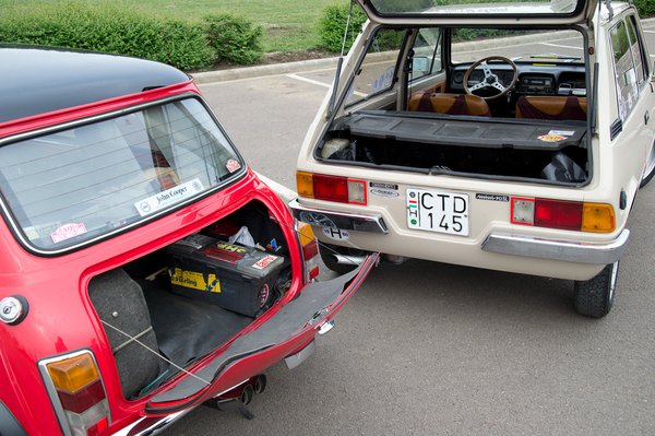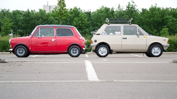 Ez az autó 1978-as, és ő a napi járgány a királyi flottában, kint lakik, sőt, hasítja a latyakot is télen. Állagának megóvásáról kétévente bespriccelt trafóolaj, valamint rendszeres karbantartás gondoskodik. Használtas, itt-ott módosítgatott, de jól működik. Sima 1000-es, egy karbival, 49 lóerővel, a Cooperénél sokkalta rövidebb áttételezéssel. Ugyanúgy ragad az úthoz, mint a gömbölyű Mini, a fejnek sokkal több benne a hely, de szerintem hátul szűkebb. Finomabb (és a levágott bot miatt), rövidebb úton kapcsolható a váltója, de míg a sportváltozat nagy szívászaj mellett, de alapvetően nyugisan utazza a 130-at, ez 110-nél már küzdve pörög, több benne a szélzaj, igaz, a karbi, a kipufogó felől kevesebb hang érkezik. Aranyos, aranyos, de a Cooper előtte már úgy hanyatt lökött, hogy egyelőre magatehetetlenül heverek a porban.