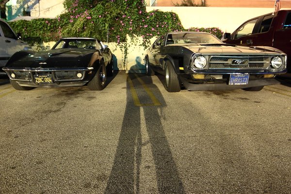 Egy átlag péntek este a budaörsi McDonald's parkolójában: multicéges Mondeo, megélhetési Mercedes W124 és mama Marutija. Egy átlag péntek este a burbanki Bob's Big Boy parkolójában: Shelby Cobra, Ford GT40 és Porsche-motoros Transporter T2.