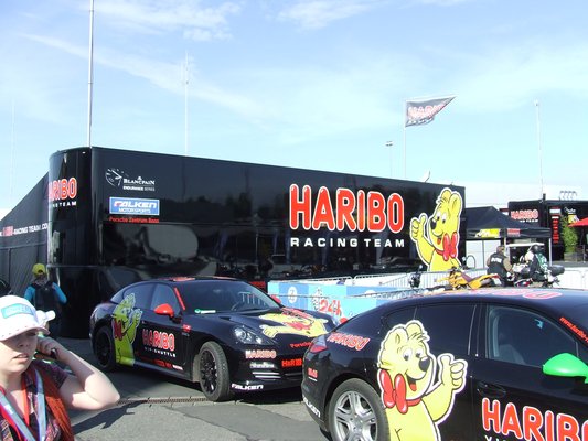 A 24 órás verseny ugyanis nem csak a csillogásról szól. Vannak itt persze sok millió euróból versenyző csapatok. A gumimacis társaság Cayennekkel hozta-vitte a VIP vendégeket, catering sátor és legalább három kamion szolgálta ki a csapatot és a sleppet. De a csapat, amelyikben Csaba is versenyzett (és végül saját csoportjukban hatodikként célba is ért!), nem ilyen háttérrel rendelkezik. Ők egy dobozos teherautón üldögéltek, és igazi baráti-családi hangulatban csinálták végig az egész hétvégét. Grillsütőn készültek a wurstok, a hűtőládákból került hozzájuk sör, üdítő.