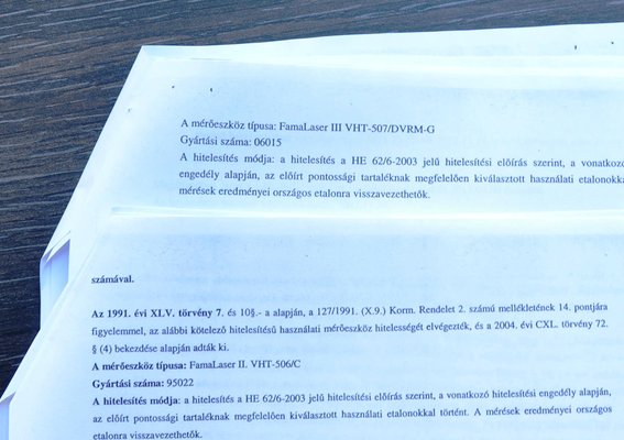 Lehet, hogy nem hitelesített géppel mérték az autókat március elején az esztergomi Nagy Duna-sétányon? Lehet, hogy az esztergomi rendőrségen össze-vissza keverednek a hitelesített, ezért bírságolásra is használható, illetve a nem hitelesített, ezért erre alkalmatlan FamaLaser III típusú mérőberendezések? Nehéz volna kideríteni. Csak a pontosság kedvéért, a fekete Corsa adatai egy olyan települési naplón szerepeltek, amelyet az MKEH-BPMMBH/06771-001/2009/ME-E hitelesítési számú gép adatai alapján töltöttek ki, a mellékelt hitelesítési jegyzőkönyvben pedig egészen más, MKEH-MH/00419-001/2011/SE olvasható. Számoljunk csak. Ez eddig a harmadik vagy a negyedik eljárási hiba?
