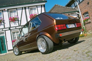 Müller klasszikus német stílusban szabta át egyes Golfját: az előre gyártott műanyag alkatrészek helyett a fémmunkát választotta, így készültek többek közt a szélesítések is – az így kialakított kerékjáratokat szépen kitöltik a 15 collos BBS-felnik. Az autó megjelenésén sokat dobnak a krómozott elemek – a tükrök és a lökhárítók például egy 1976-os Golfról származnak. A csokoládébarna fényezés – bár sokan méregdrága, egyedi munkának vélik –a Ford gyári kínálatában is szerepel.