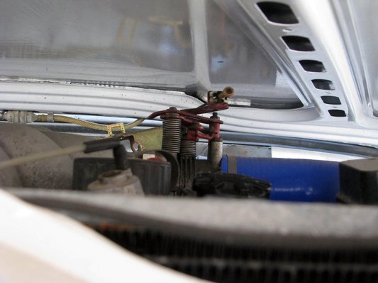 Szereztem egy gyönyörű rozsdamentes állapotban lévő tankot, az ellöttyenést pedig egy puffertankkal próbálom megoldani. A kilométerórát be kell kötni, az üzemanyagszint-jelzőt szintén. Fékeimet még a múltkori pályanap előtt megcsináltam, a fékolaj Castrol SRF, ha a WRC-be jó, ebbe sem fog megforrni, a betéteket pedig olyan anyagból csinálták, amilyet a Mitsubishikben használnak a rally ob-n. A fékkel nem is volt baj, nem puhult föl, végig jól bírta, a féktávokon lógtunk az övön. A géptetőt nem tudom lecsukni, mert a 35-ös nagy motor pillangószelepe van rajta, és a gázkar nem fér el a géptető alatt. Még az előző tulaj alakította át ilyenre, hogy több levegőt kapjon, viszont a háromfelesben függőlegesen van, itt viszont vízszintesen, ezért nincs hely a számára. Korábban elfért, mert egy olyan géptető volt rajta, ami ott meg volt domborítva, de amikor átfestettem az autót, levettem róla, mert rohadt is meg csúnya is volt. Néhány milliméter hiányzik csak, mert ha lecsukom rendesen, annyira szorítja éppen, hogy nem tud elfordulni a tengelye körül, illetve összekarcolja a tetőt belülről.