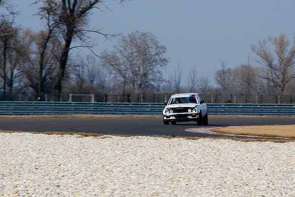 Eljött a nagy nap, eligazítás, aztán ki a pályára. Tóth Zé beült mellém, ő már elég sokat pályázott, versenyzett is, majd segít. Elindultunk, először felvezető kör, aztán elkezdtük veretni. Toci már a felvezető körben mondta, Kopasz, ez lobogós lesz! Egyre jobban élveztem a pályát, próbáltam megtalálni az íveket, féktávokat, egyszer csak az etap felénél, az egyik kanyarban elfogyott az erő a kocsiból egy pillanatra, aztán ez a jelenség rendszeressé vált minden kanyarban. A kanyar után - amikor az autó visszaállt egyenesbe - megint jó lett, de a kanyarban és a kigyorsításokon, csak annyit tudott, hogy nem lassult. Kiérve a parkolóba, kivettem a tankból a szűrőt, és letakarítottam róla a fekete ragacsot. A következő etapban megint ugyanez, üzemanyag ellöttyent, a szűrő is koszolódott, és az erő annyira elfogyott, hogy a fele olyan erős autókat alig bírtam megelőzni. Próbáltam tele tankkal is menni, hátha az segít, de csak néhány perccel tolta ki a szenvedős időszakot.