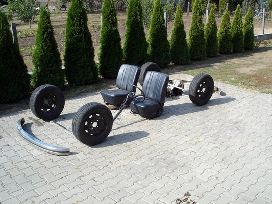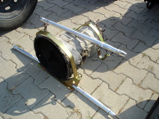 A másik probléma, hogy az erős motor és a kemény futómű azért igénybe veszi az eredetileg 50 lóerős autó kasztniját, ezért toronymerevítő kell előre, valamint hátra egy speciális váltófogó bölcső és egy Cup Brace-nek nevezett, eredetileg a német Kafer Cup versenyautóiban bemutatkozó három csőből álló merevítés, amely a váltótartó villát köti össze a lengéscsillapító tornyokkal. Nekem ilyenem még nem volt, de aki használja, azt mondja, hogy a kocsi minden menettulajdonságán érezhető, még a hirtelen startnál bekövetkező kerékpattogást is megszünteti. A váltót lefogó bölcső pedig megakadályozza, hogy rajtnál és terhelésváltásokkor a váltótartó bakok elszakadjanak, ahogy a váltó ide-oda mozog rugalmas felfüggesztésein.