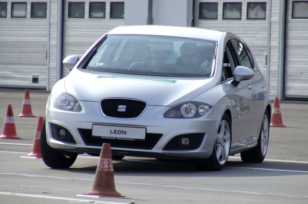 Azt hiszem, vonzom a bójákat, pedig igyekszem kerülni őket. Legtöbbször nem borítom fel, épp csak megbillegtetem, de az pont ugyanannyi hibapontot ér, mint ha halálra tapostam volna, oda az egész vállalható teljesítmény. Egyesben, szinte végig tiltás közelben forgatva az 1,4-es TSI Leon motorját, egész jó időt lehet menni a kanyargós terepen. De felesleges aggódni, hogy esetleg másodikba felváltva elfogy az erő, és lefullad a kocsi minden kanyarban. Alacsony fordulaton, 1500-tól már 200 Nm nyomaték segít a kigyorsításban, a turbó a hónunk alá nyúl. Gyorsabban értem egy-egy kanyarhoz így, pedig az egyesben ordító motor miatt lényegesen nagyobbnak tűnt a tempó.