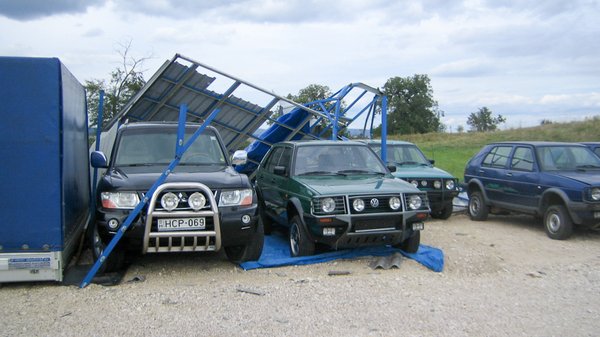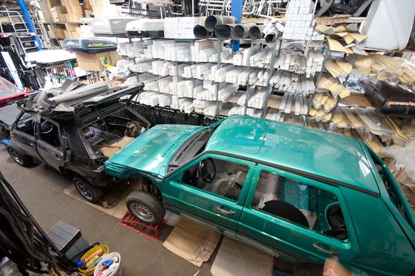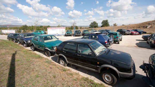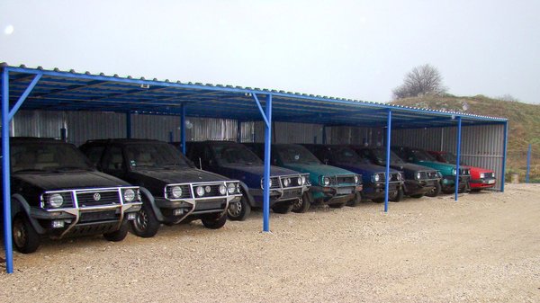 A telephelyen álló autók állapota erős szórást mutat. Van itt nagyon ritka, sötétkék-metál, de szétrepedt kittel, borzalmasan taknyolva javított német Chrome és nagy lökhárítós, csörlős lengyel is. A szinte teljesen intakt zöld Country ritkaságszámba megy. Elszórva egy-két Golf Syncro és egy törött Octavia 4x4 TDI, ennek a hajtáslánca kerül majd az egyik napi használatos alá. Van köztük olyan, amelyik már csak alkatrészbázisnak lesz jó, Árpád szerint megmenthetetlen Country nincs, ellenben olyan, amelyikkel már nem éri meg foglalkozni, igen.