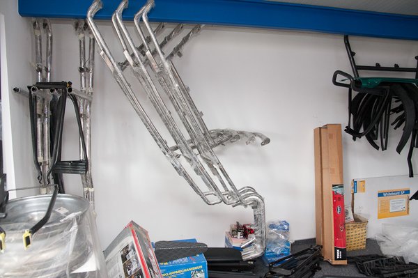 A díszléceket, gumitömítéseket, fényszórókat, lámpákat az utolsó sarokig lesikálja, kis kefével, műanyagápolóval megy nekik, majd cikkszámonként külön fellógatja egy helyiségben, ahol napfény nem éri őket. A sérülékeny elemeket fóliázzák mindaddig, amíg nem kerülnek beépítésre.
