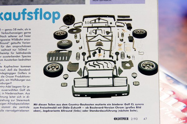 Tákolt-taknyolt autót könnyen lehet venni, hiszen sokan olyannyira nem ismerik a típust, hogy még Golf-találkozókon is rácsodálkoznak, milyen szép házi átépítést látnak. De emberünknek vette már le rendszámát a rendőr, mert nem megengedett karosszéria-átalakításnak kiáltotta ki a gyári autót (gallytörő, emelés). Majd a helyi NKH-állomáson is addig rugóztak a kocsin, amíg be nem vitt egy eredeti Country-prospektust, amit le is fénymásoltak gyorsan, ha már ott volt.