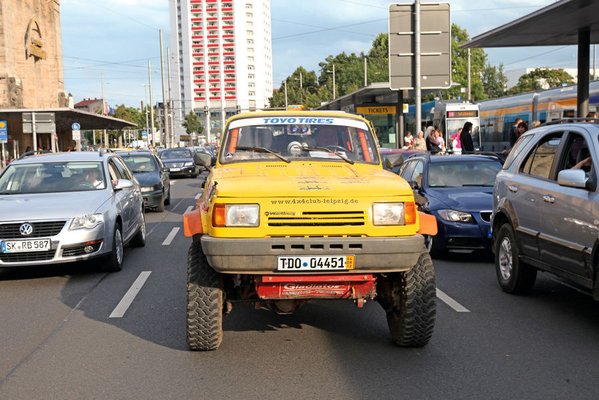 Amikor felmerült, hogy új off-road versenyautót kellene építeni aktuális hobbijához, úgy döntött, egy öreg Wartburg 1.3 Tourist karosszériája alá építkezik. Kiderült ugyanis, hogy a rövid Mercedes G osztály alváza passzol a Wartburg alá. A 450 euróért vásárolt, 1988-as kombiból persze nem maradt túl sok: csak a karosszériát tartotta meg, de ezt is merev bukócső-rendszer merevíti. Belül csak az ajtókárpitok, a műszerfal egy része és a kormány emlékeztet az eredeti konstrukcióra – arra viszont nagy összegben fogadnánk, hogy a jellegzetes, zengő ajtócsapódás-hang, a Wartburgok egyik jellegzetes tulajdonsága megmaradt.