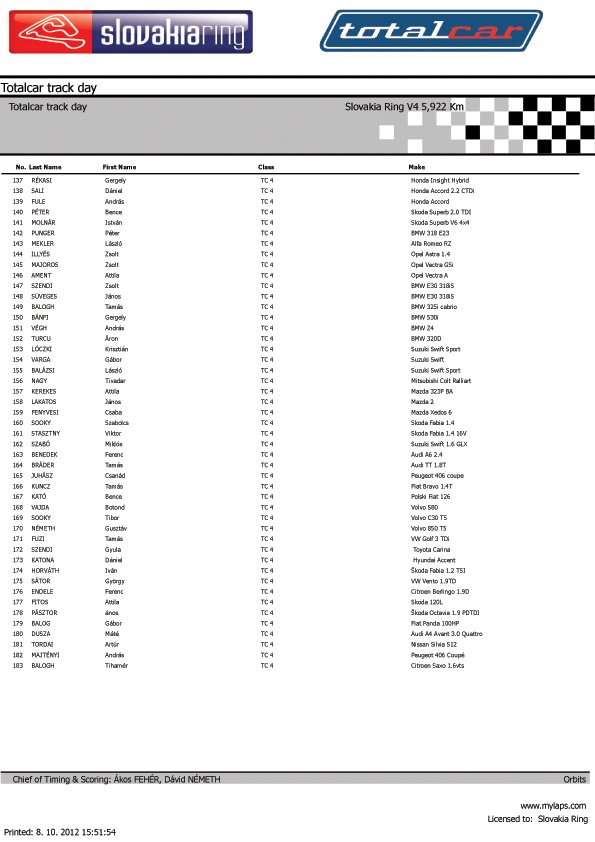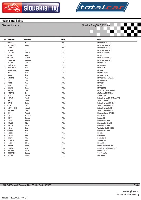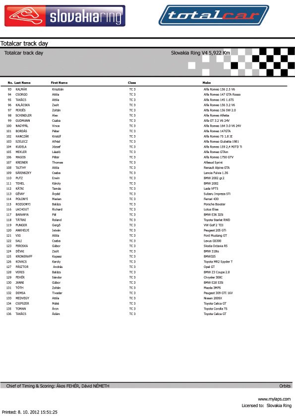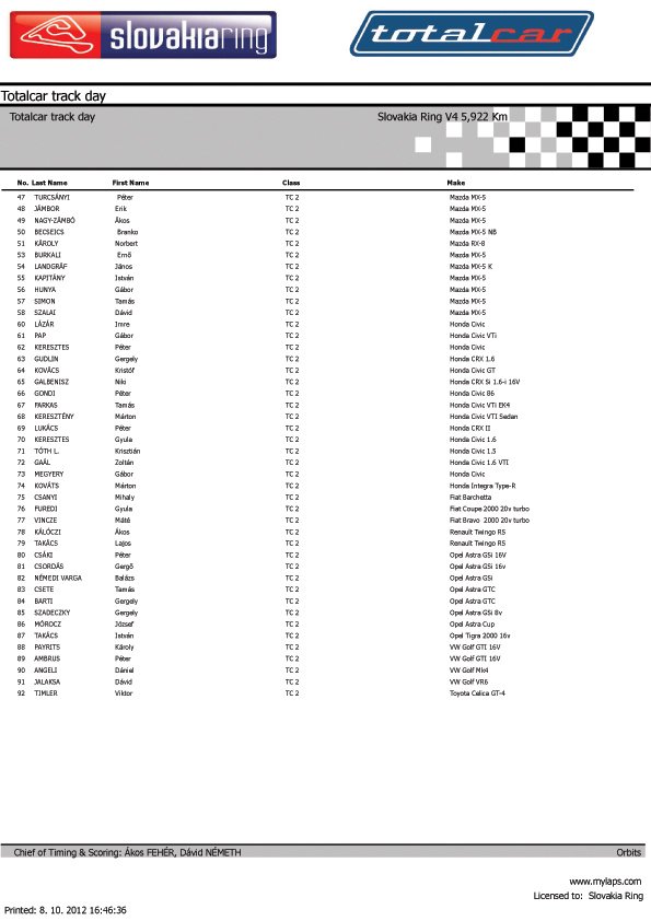 A lista itt letölthető, azóta két visszalépőnk lett, mindkettő a második csoportból (egy RX-7 és egy MX-5).
