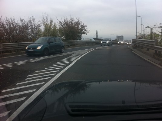 Itthon az ilyesmihez súlyos balesetre, esetleg hangosan elégedetlenkedő újságcikkekre van szükség (bár biztos vannak kivételek is, csak hogy a szabályt erősítsék). A korábbi, akár súlyos balesetté is alakulható veszélyes helyzetet elmesélő cikkünknek megvolt az eredménye, igaz, nem tagadhatjuk le, melyik ország, melyik városában járunk. Természetesen nagyra értékelem azok fáradozásait, akik felújították az inkriminált útburkolati jeleket, de nem tudom nem észrevenni, hogy a sávok széleit jelző csíkozásra már nem futotta, és – bár nem vagyok útburkolati jel-festék szakértő – nekem nagyon vékonynak tűnik a felvitt festékréteg. Nem csodálkoznék, ha jövő ilyenkor már megint alig látszódna a mostani munka eredménye.