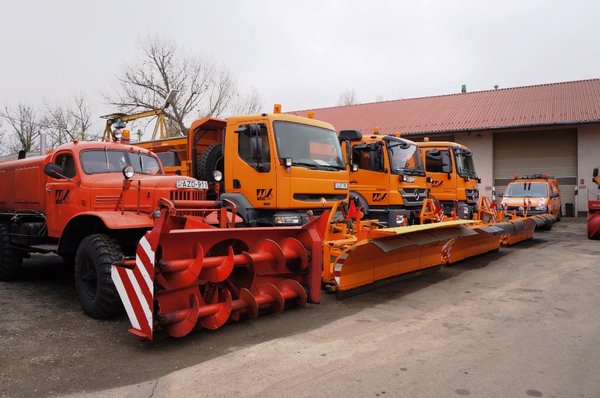 Reménykeltő lehet az idei év, mert az ősrégi, de imádnivaló Zilek mellett csatasorba állnak a flotta számára frissen vásárolt Mercedes Axor 4x4 és Actros 6x6 (igen, ez hatkerék-hajtású, 1650 newtonméter csúcsnyomatékú szörny) típusú nagyteherautók, valamint kis és nagy Unimogok. A művezetők Volkswagen Amarokokkal siethetnek a helyszínre és jött még egy csomó Volkswagen Transporter is. Összesen 190 új gép fiatalítja a járműparkot, így már olyan sokféle márkát találunk az állományban, hogy abból össze lehetne ütni egy csinos haszonjármű-történeti tárlatot is. A pesti bemutató helyszínén, a kiglancolt büszkeségek mögött találtam Tatrát és öreg Liazokat, sőt még egy Renault-Keraxot is. Az volt a legérdekesebb az egészben, hogy ahogy így több sorba állították őket, fakultság szerint pont kiadták a sárga munkagépszín három-négyféle árnyalatát. A legöregebb vasak mustársárgák, a legújabbak narancsszínűek.