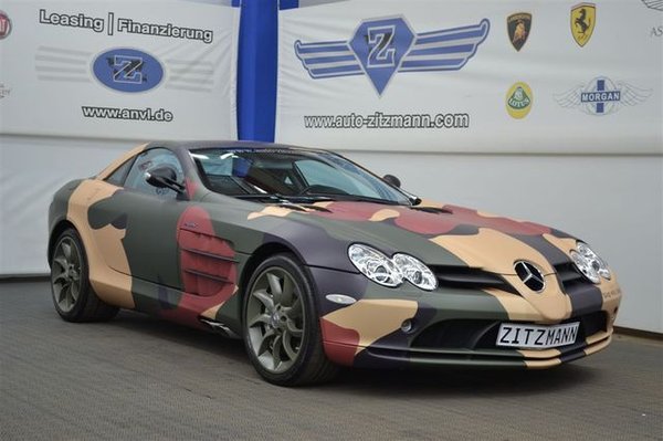 Persze ízlésről vitatkozni nem érdemes, még ha egyesek igen különös szépérzékről tesznek is tanúbizonyságot.Lapo Elkann Ferrarija és Mario Balotelli Bentley-je óta úgy tűnik, új divat a terepszínű álca, melyet ez a németországi SLR McLaren sem úszhatott meg.