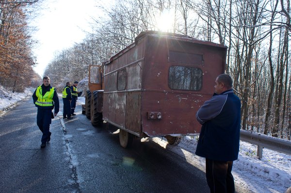 A visszafelé vezető úton még mindig darabokban az eszköz, amikor váratlanul kapásunk van, egy LKT típusú vontató. Tipikus munkásbódét húz, rendszámtábla egyiken sincs. Gábor gázt ad, megelőzzük a szerelvényt, majd Pisti kipattan az autóból és leinti a csotrogányt. Az M-es zöld rendszám valóban ott van a szélvédője mögött, de még rajta a csomagolás, és mindenféle utastéri lom takarja. A vontatmány pontosan úgy néz ki, mintha húsz év erdőben állás után húzták volna elő.