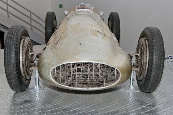 Talán büszkék a versenyautóra, így emelvényre került, jó társaságba. Mellette egy NW12-es sportkocsi 1900-ból, egy Wikow 7 1929-ből, és egy igazi, döbbenetes csoda, a Mercedes W154: Caracciola 454 lóerős monopostója.