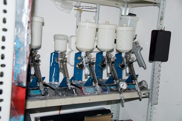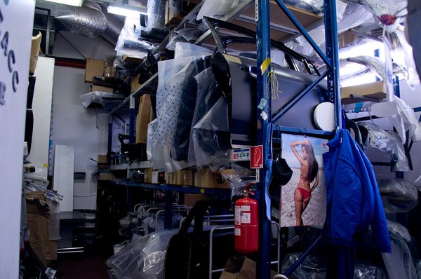 Pedig a fényezőműhely irigylésre méltó. Csorgatom a nyálam a polcon sorakozó fényezőpisztolyokra, a saját festékkeverő kupszlira, a három előkészítő állásra, a kamrára. Éppen most tesztelik a legújabb, spéci, excentrikus mozgású polírozógépet, ami nem hagy hologramot maga mögött. Nem kérdés, itt minden feltétel adott a tökéletes munkához.