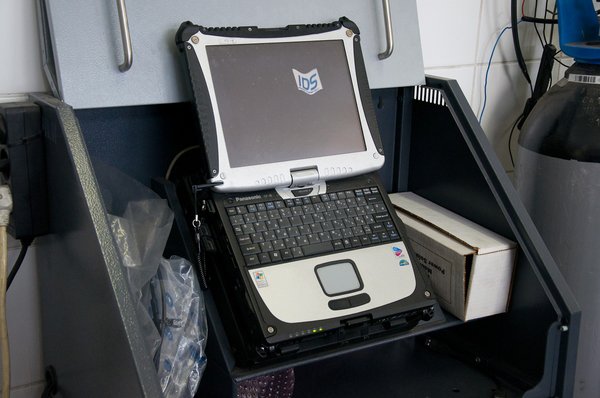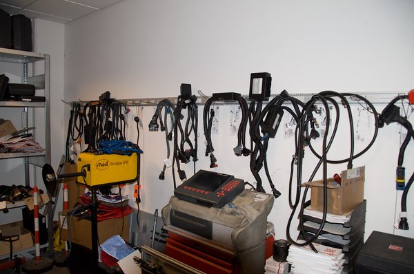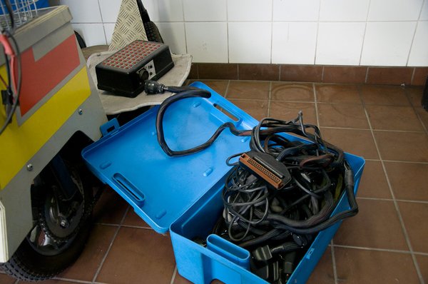 Hogy maradéktalanul meggyőzzenek a felkészültségükről, betessékelnek a célszerszámos cellába. Műanyag kofferek sorakoznak a polcokon, diagnosztikai kábelek rengetege a másik falon, néhány nagyobb gép a sarokban. Nem akarom tudni, mekkora tőke fekszik ebben az arzenálban.