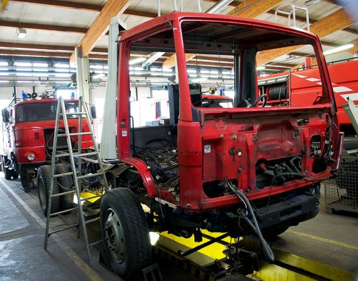 A két üzemeltetési körülmény együttállása előrevetíti, hogy egy-egy tűzoltóautó kívülről akár szalonállapotúnak is tűnhet, miközben a piros csillogás alatt rettenetes szerkezeti károsodások rejtőzhetnek. Most megnézhettem a magyar állományt karban tartó BM Heros Zrt-nél, hogyan végzik a nagyjavításokat. 2012-től a Heros gyárt, tervez és szervizel, továbbá a tűzoltóságok bevonásával rendszert egységesít, de közbeszérzési eljárásokon bármilyen más cég is indulhat.