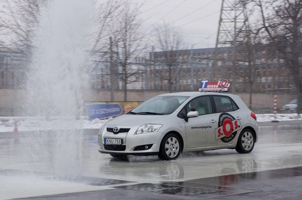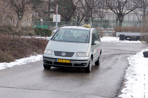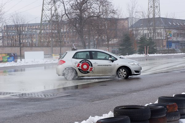 Állok a hidegben a pálya szélén, műeső szitál az arcomba. A hétszemélyes Volkswagen gyorsít, majd sodródni kezd, és ahogy látom, Marczi odabent villámkézzel tekeri a kormányt. Amikor a Sharan lecsillapodik, kiinteget és visszakanyarodik a célhoz. Kicsit álmos még, de lassan felébred és menni fog ez. Így is történik, amikor nem tapossa le a féket, csupán manőverezéssel próbálja stabilizálni az autót, lassan rendeződik a kép. A második kör már sokkal jobban sikerül, és a harmincévnyi vezetési rutinhoz hozzáadott temérdek műveszély beépül a mozdulataiba. Az egyterű automata váltós, ezért nem is ül bele a kezdő Zoli. Kicsit máshogy is kell kezelni a nehéz helyzetben, mint egy kézi váltós autót. Kuplungolni nem lehet, de a klubos oktatók szerint eleve nagyon gyorsan kéne a pedálok közt lépegetni. Az a következő szint.