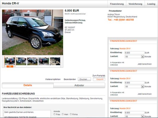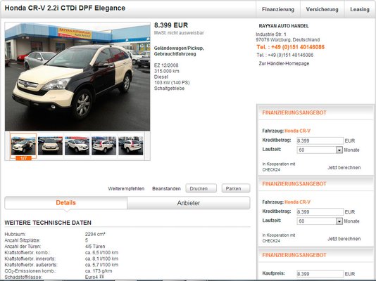 Álomgyönyörűszép, kétszer is ki van emelve, bomba vétel. De ehhez van szám is, mondja. Ja, az van, majd mindjárt felhívjuk. Felhívom, a nagy semmi. Nézd meg, itt vannak az első igazi hirdetések, 6500 euró, 300 ezer kilométer, na ez igazi. Ha kinyitod a hirdetést, rá tudsz menni a kereskedő honlapjára, van cím, vonalas szám, mobil, mióta van fent a cége a mobilén, fax. Itt sorakoznak a 250-300 ezret futott autók, drágábban, mint a keveset futott, jól felszerelt. Nem furcsa? Oké, de mi a lehúzás? Ez a fajta csalás már tíz éve megy, de még mindig vannak, akik nem hallottak róla.