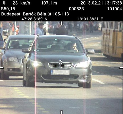 Hangulatos próbamérésünket a budapesti Bartók Béla úton végeztük, ahol kiderült, nem csak a rendszámtáblával közlekedő autókat, buszokat is motorokat, de akár a villamost, sőt, a kerékpárosokat is pontosan beméri a lézer. Utóbbiak ezúttal megúszták, mert nagyon lassan közeledtek. Ettől függetlenül szórakoztató így méregetni, az ember szinte érzi, ahogy egy-egy jól irányzott lövéssel hatalmasat lendít a közlekedési morálon. Ez persze vicc, mint ahogy az sem teljesen komoly amire a rendőrség rendszeresen hivatkozik, hogy a közlekedési balesetek több mint negyedét a gyorhajtás okozza. A valóságban húsz százalékot a relatív gyorshajtásra vezetnek vissza, azt viszont nem lehet kiszűrni a méregetéssel.