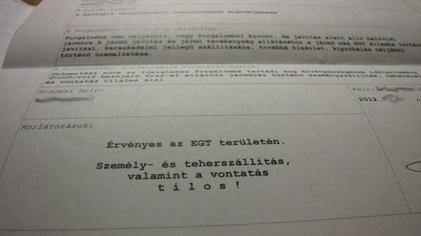 Péterék nem trélerrel szállítják haza a kocsikat, inkább minden évben kiváltják az elvileg az egész Európai Unióban, sőt az Európai Gazdasági Térséghez tartozó országokban is érvényes magyar próbarendszámot. A rendszámhoz mellékelt ideiglenes forgalomban tartási engedély korlátozások rovatában szerepel is a rendszám érvényességi területe.