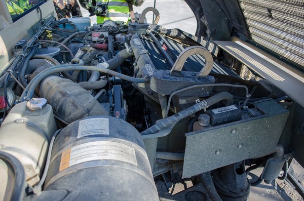 A terepen is meghökkentően jól mozog, könnyedén szökell fel a siratófalon, nem gyengül a mély homokban. Pedig a motor az eredeti, a 6 és fél literes V8-as turbódízel, ami csak 190 lóerős, és még csak nem is nyomatékos. 515 Nm lényegesen kevesebb, mint a háromliteres, 350 CDI jelzésű lakossági Mercedes turbódízelé, amit legutóbb a CLS Shooting Brake-ben vezettem, és 620 Nm-rel tolt. A Mercedest így 250-es végsebességre kell korlátozni, és 6,7 másodperc alatt van százon. Ha nem erős és nem nyomatékos, akkor vajon mi? Hát elpusztíthatatlan, ilyen követelmény is létezik a harcászati használatban. A lényeg úgyis a váltó, illetve a felező, hiszen terepen 30-40 es tempóhoz ez még vontatásnál sem lehet kevés.