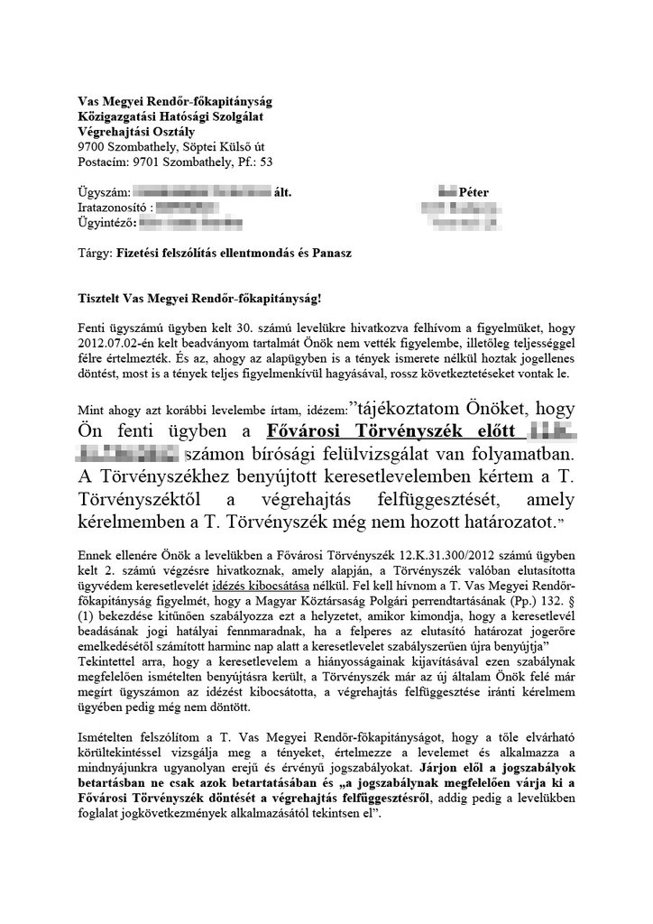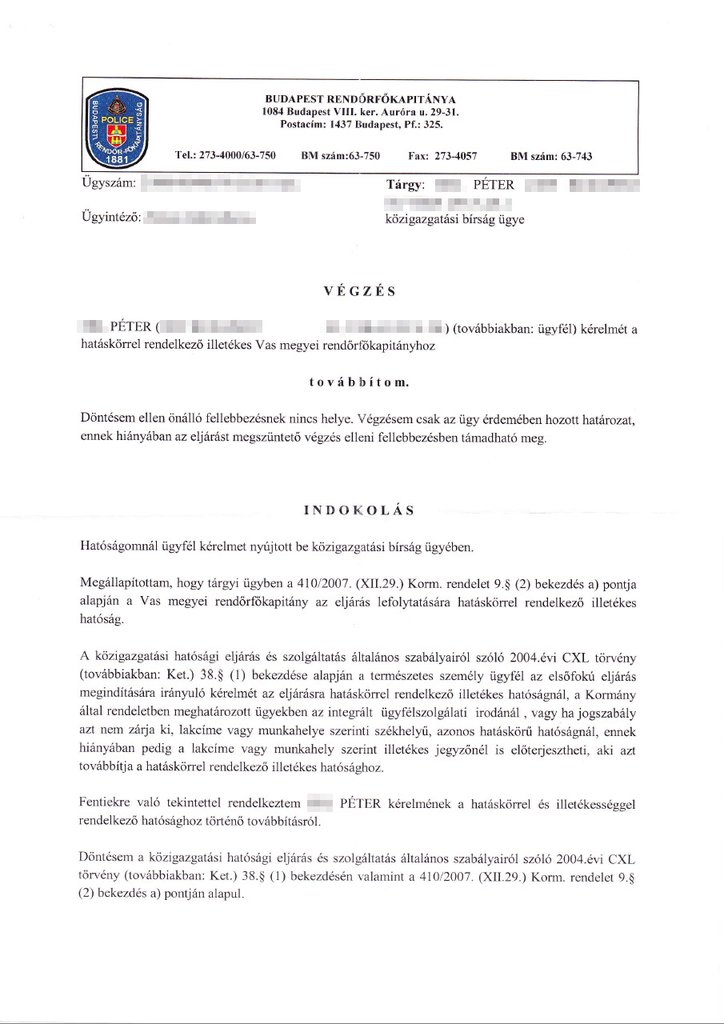 Talán annyira már megismerte a kedves olvasó Pétert, hogy tudja, mennyire precíz és szorgalmas ember, ezért nyilván senki sem csodálkozik, hogy ezt a kettes számú határozatot is íziben megtámadta. A rendőrségi bürokráciát ismerve méltán írhatom, hogy fénysebességgel – két héten belül – jött a válasz: Budapest továbbította a panaszt Vas megyének.