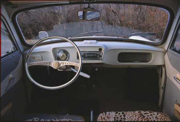 Még az eredeti vasdob is megvan, noha a fűtéshez szükséges palást már lerohadt róla. Csillognak a díszlécek, elképesztően szépek a dísztárcsák, alig ereszkedett meg a tető, a csomagtartóból pedig még az elakadásjelző háromszög ősének tekinthető, macskaszemes, zászlós figyelmeztető állvány is előkerült. A műszerfalban ugyan az autónál bő öt évvel fiatalabb Blaupunkt rádió van, ám a tulajdonos otthon dobozban tartja az eredeti takarólemezt is.