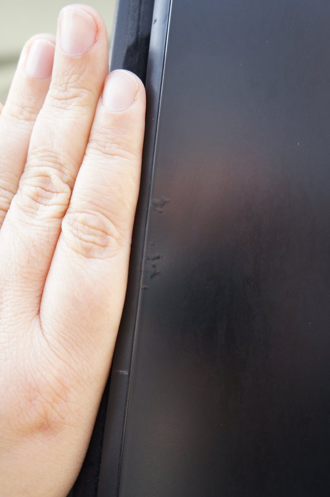 A szerkesztőségi próbán nem hallottunk rendellenes zajokat, így azt a baromi idegesítő, a középkonzolban keletkező búgást sem, melyről a Molnár úrral és Schönek ügyvéddel közös korábbi kocsikázáson sikerült felvételt készítenem. Az utastéren sajnos látszik, hogy néhányszor széttrancsírozták már a lázas hibakeresés közben. Nem, nem arra a koccanásra gondolok, amely még az első hónapokban történt és amelyet a tulajdonos is említett. Azt a szervizben nyom nélkül eltüntették. Sokkal elgondolkodtatóbb, hogy a mindenféle gyári tömítgetések mennyit rontottak a beltér küllemén. Hullámosak az ablaktömítések, több helyen kitüremkedik a szélvédőragasztó a bal oldali A oszlop mellett és egy kezdődő beázás foltjai láthatók jobb oldalon, a tetőablak kezelőpaneljének közelében. Ezt az ablakot eddig egyszer sem nyitotta ki a tulajdonos.
