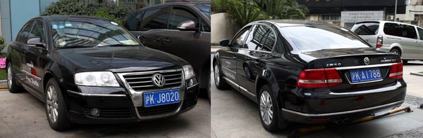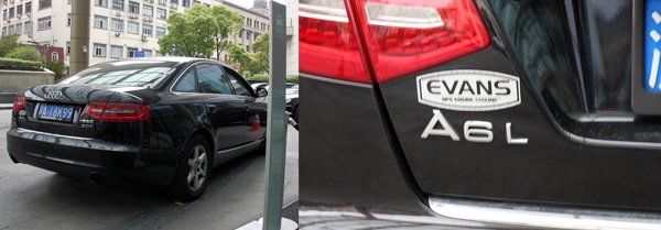 Ismét egy jó találat! Audi A6L, helyi gyártásból. A kínaiak igazi lábtérfetisiszták, minden középkategóriás szedánt hosszítva vesznek, láttam nyújtott Bangle 5-öst is. Nem túl jók az arányai, az Audi viszont nyújtva elmegy. A 2.0T feliratot direkt vágtam le, nehogy a betűtípusból felismerhető legyen.