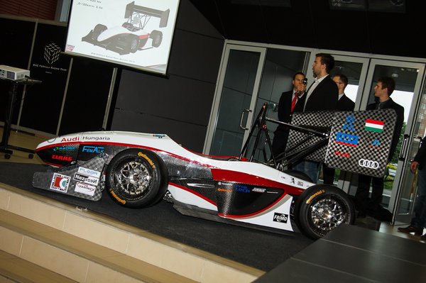 A legújabb versenyautójukon az utolsó simításokat végezték a gyöngyöző homlokú BME-sek, mikor a nem túl formális sajtótájékoztató zajlott. Míg én minden válaszra újabb kérdéssel feleltem, egyre érezhetőbbé vált a műhelyben a feszültség: most már nem ártana, ha mindenki, aki nem az esti bemutató miatt dolgozik az autón, arrébb sasszézna, mert útban van. Sok tanulsága van egy-egy ilyen projektnek, ezek egyike, hogy mindig, minden az utolsó pillanatban lesz kész, vagy egy kicsivel utána.