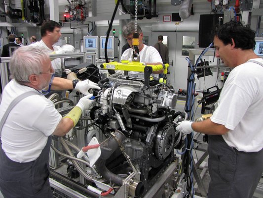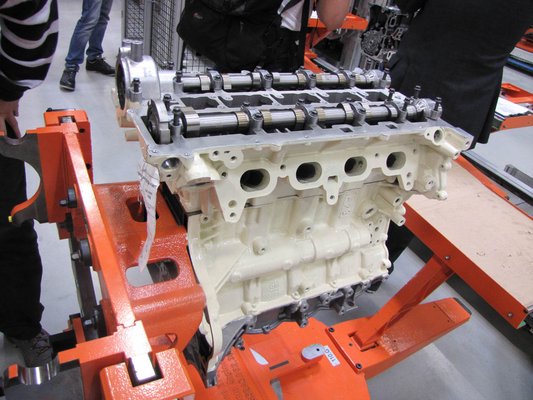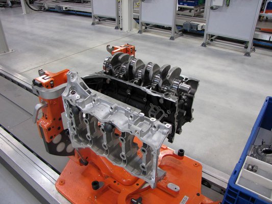 A blokkok előforgácsoltan kerülnek a gyárba, ahol aztán lépésről lépésre alakítják ki a hengerek belső felületét, olaj- és egyéb furatokat, a blokk és a hengerfej találkozási felületét. A főtengelyek nyers, kovácsolt öntvényként kerülnek fel a megmunkáló sorra, minden furatot és csapágyfelületet itt alakítanak ki. A megmunkálás során nagyon sok helyen nem alkalmaznak folyadékos hűtést, a környezet minél kisebb terhelése érdekében elhagyják az emulziót és száraz forgácsolással dolgoznak.