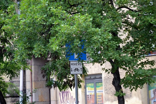 A táblát nem azért nem építették közvetlenül az utcasarokra, mert így akarnak kitolni az autósokkal, hanem mert az itt lévő teresedés és a betorkolló Déryné köz miatt egyszerűen ide kellett tenni a táblát. És akkor most ez már mindig így lesz? Az autósoknak meg kell várniuk a lombullást, hogy messziről is látni lehessen a táblát? Úgy tűnik nem. Braun úrék egyik ötlete a fa odahajló ágának levágása volt, de rögtön szóltam nekik, hogy érdemesebb volna inkább a táblát áttenni. Ebben egyetértettünk, Braun úr második ötlete is ez volt, a fa megnyesése után. Az akác nem tehet arról, hogy megváltozott a forgalmi rend a környéken, jegyeztem meg ekkor kissé bátortalanul.