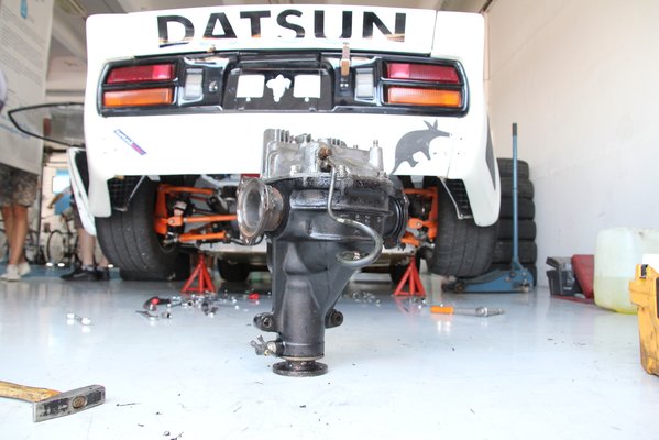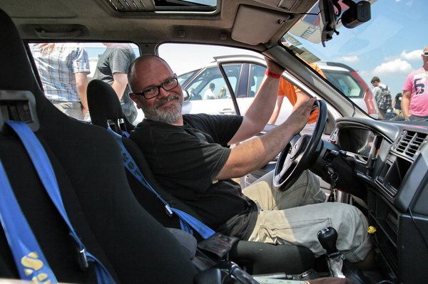 Közben Karottánál beütött a krach, kiderült, a diffijével valami kapitális baj van. A boxuk előtt óriási tömeg, de csak a meggyötört és búskomor Bazsót, és a még nála is laposabban pislogó, addigra már 70 órája szinte folyamatosan online-üzemben lévő Powered Ákit lehetett látni a Hangyász mögött. Átéreztem a drámát, hiszen ez a nap lett volna a Hangyász diadalmenetének első állomása, mikor végre összeáll annyira, hogy megérezhessék a vele hónapok, évek óta szívók, hogy igenis van értelme újabb emberfeletti energiákat tenni az autóba, mert meghálálja. De éppen genyó módra megint kibabrált azokkal, akik vért és verejtéket nagy mennyiségben hullatnak csak azért, hogy ez a dög végre kész legyen.