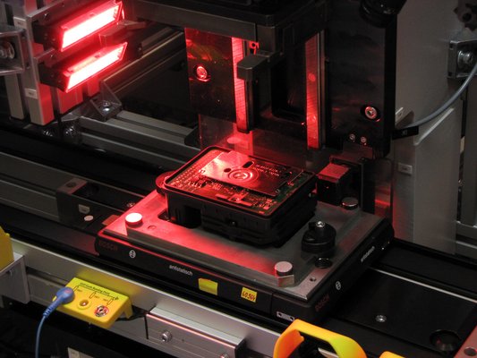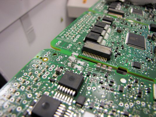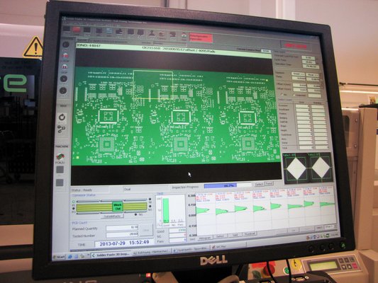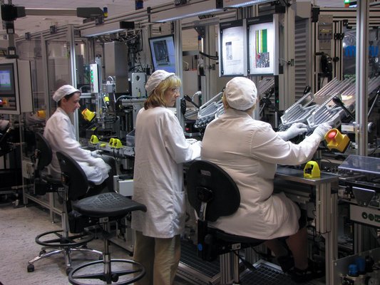 Nagyrészt nők dolgoznak a sorok mellett, már ahol nem robot végzi az aprólékos munkát. A termelési folyamat legelején egy nem kimondottan gigantikus, nem is szörnyen látványosan dolgozó gépsor csinál ellenállásokból, integrált áramkörökből, diódákból, és ki tudja, még mi mindenből komplett vezérlő elektronikát. Itt, a soron programozzák fel az elektronikus agyat, sőt, az üzemből előre kalibrált részegységek kerülnek ki, így ezeknél a vezérlőegységeknél már sem a beépítéskor, sem az esetleges szerviz-műveletek után nincs szükség külön műszeres kalibrációra. Hogy ebbe az üzembe bejussunk, nem csak belépőkártyára, de megfelelő felszerelésre is szükség van.
