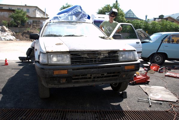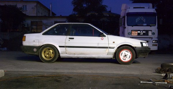 Összecsiszolódott csapatként olyan feltartóztathatatlanul haladtunk előre, hogy magunk is meglepődtünk. Miután elkészültünk a fékkel, ha már arra jártunk, kiborítottuk az első gólyalábakat. Találtunk ugyanis az autóban két pár rugót, amiket kár lett volna a csomagtartóban rohasztani. A két piros - mint később kiderült - egy méltán híres Szivák-féle szett előre; egy milliméterrel vastagabbak a gyárinál, és rátehénkedve érezhetően keményebbek. Befűztük gyorsan, valamivel lejjebb is került a Corolla orra, mi pedig cselekvési kényszerbe kerültünk, mivel ha így marad, még alulkormányzottabb lesz, amit életünk árán is megakadályoznánk.