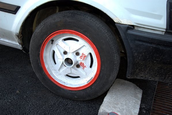 Komolyan el kellett gondolkodnunk a fék-kérdésen is, mert a rozsdás első tárcsák egyetlen pályanap alatt szinte vasig ledarálták az új első betéteinket, és éreztük, hogy hibátlan állapotban is kevés a tartalék a rendszerben. Tanakodtunk, nézelődtünk, mivel lehetne költséghatékonyan továbblépni, de nem sikerült kifundálni a tutit, főleg, mert fájt volna elveszíteni a 13-as kerekek használatának lehetőségét. Amikor megláttam, hogy leakciózták az AE86-oshoz való Brembo féktárcsákat, nem hezitáltunk tovább. Izzon a vas, valami csak lesz. Kár, hogy időközben elfogyott a jó kis Mintex fékbetét, csak a világhírű Simerből volt raktáron a Corollához, ettől kicsit fázom, de meglátjuk, hogy bírja. Majd jól bejáratjuk.