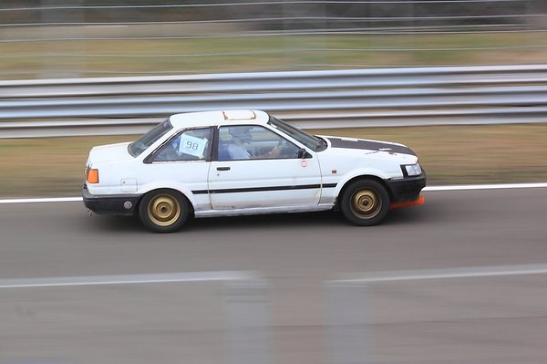 A vasárnap lett volna a nyugisabb nap, másfél órákkal a pályára menések között - ez a kényelmes időbeosztás, gondoltam én. Ehhez képest akkora pörgés volt körülöttünk, hogy a boksz mélyéről, mint egy barlangból követtem az eseményeket. Az első körben Pista egyéni rekordot állított fel az AE86-osunkkal, egy 2:37 sokat, volt is nagy boldogság. A bal első gumink engedett két tizedet, ezért körbehaboztuk a gumisnál, de nem találtunk léket. Fél órával a második kör előtt nagy nyugalommal kimentem tankolni, de már a bokszból kifelé éktelen karistolást hallottam. Elmormoltam egy miatyánkot.