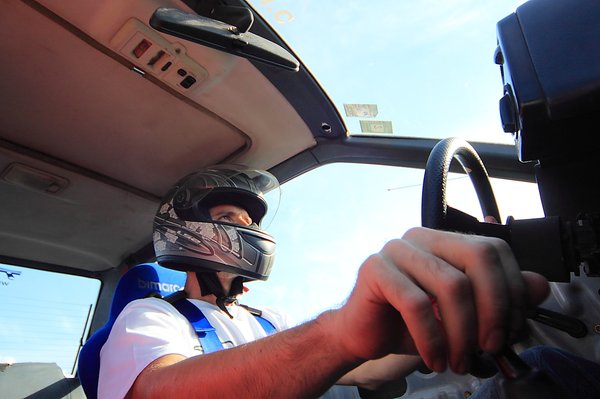 Amikor már azt hittem, minden fontos megtörtént aznap, hirtelen kitárult a Hangyász utasajtaja, és fél perc múlva már csövek között, fülledt forróságban repedezett a dobhártyám. Attól tartok, Karotta bátorságát némileg tompította a felelősségtudat, mert egy pillanatig sem legyintett meg a félelemérzet - az első kör belső videójához képest fele annyit bukdácsoltunk, viszont szinte minden váltás előtt felkoppantunk a fordulatszámkorlátozón. Érezni, hogy nagyon szeretne nyolcezer fölé pörögni az a motor.