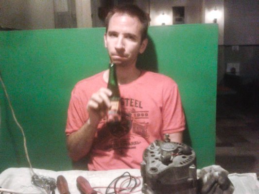 Egy meredek mellékutcában hagytam az autót, ott találkoztunk. Bandi megint végigmért mindent, lekapta a feszültségszabályzót, majd szétborította a generátort. Egy könnyed 'Áhhá!' formájában pattant ki Bandiból a heuréka: