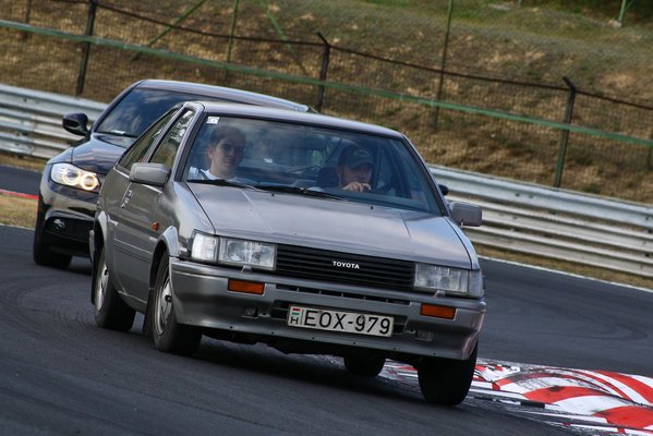 Jelentem, Rudi, a címlapos él. Hogy virul-e azt nem tudom, mindenesetre saját lábán hagyta el a helyszínt. Ez azt is jelenti, hogy a Hacsi is...és milyen jól teljesített. Köridőt nem tudok, nem mértük, de minden megtett kör maga volt az elillanó örökkévalóság. A kis japán vakarcs mesésen pontosan feküdt rá a kanyarokra, egyszer sem kelletlenkedett, és mindig azt tette, amit kértem. A sebesség illúziója továbbra is megvan, pedig szánalmasan lassan mentünk.