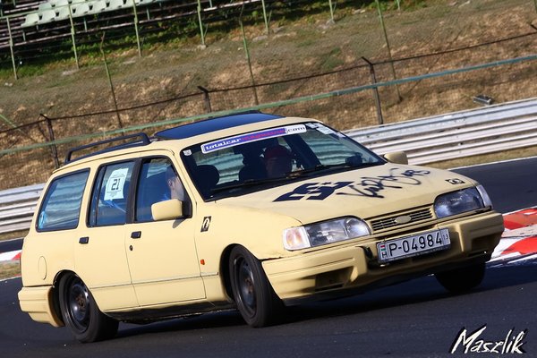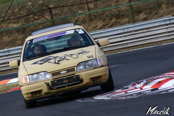 Majd' minden etapban vittem utast is, ami persze egy kicsit feszélyezettebbé tesz, hiszen másért is felelek, miközben igyekszem minél gyorsabban menni a pályán. Természetesen a pluszsúly, amit ilyenkor magával visz az autó, lassítja a köröket, de ezen nem múlik semmi. Meg aztán meg kell hagyni, jó látni, mikor az elsőbálozók vigyorogva szállnak ki a boxutcában. A Sierra nem olyan erős, hogy megrémítse az utasokat, de már kellőképpen más dimenziókban tud mozogni vele az ember a pályán, mint amihez a hétköznapokban hozzá van szokva mindenki. A pályanapon is dolgozó OMG visualsos Kiszely Tomi barátnőjét is elvittem pár körre. Erről a menetről készültek belsőkamerás felvételek is, talán majd valamelyik adásba is bekerülnek. Én a Maszlik Zoltán által megosztott galériában találkoztam ezekkel a sikánban készült képekkel, azt hiszem, mindent elmondanak. (Ezúton is köszönet a képekért!)