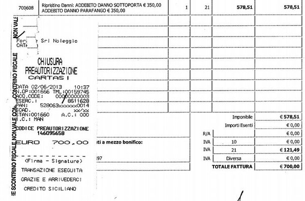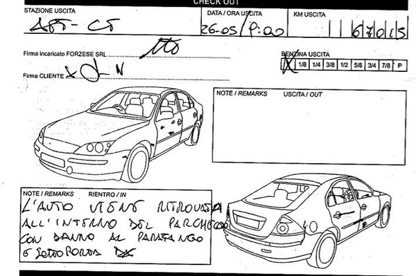 Ezért is érdekelte Nándort, hogy pontosan mire ment el a pénze, ugyanis biztosan tudta, nem okozott kárt. A szabályok és a szerződésben foglaltak ellenére üres tankkal adták át neki a Fordot, de jó tíz liter üzemanyaggal vitte vissza, de ez már mellékes. Reklamáló e-mailt küldött, mire az olaszok elfaxolták neki az általuk kitöltött visszavételi jegyzőkönyvet. Tudják, ez az a papír, amelyen feltüntetik a bérautó esetleges új sérüléseit, hibáit.