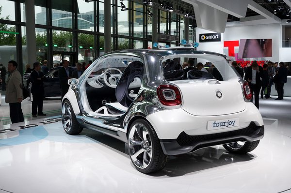 Mire oldala is lesz, és a boltokba kerül szíves felhasználásra, a Fourjoy remélhetőleg nevet is vált majd. A végleges autó orrkiképzése, méretei, Tridion biztonsági cellája kvázi ugyanazok lesznek, mint a tanulmánynak, amely most 3,4 méter hosszú, tehát épp egy hangyányit nagyobb a Volkswagen Upnál. Beülni nem tudtam, mert nem engedtek fel a platformra, de annyit még hozzá tudok tenni: a forgalmazás 2014 végén kezdődik.