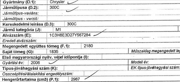 Az eredeti alvázszáma kilenc utolsó karakterében tért el attól, amelyet a fentebb felsorolt szakértők jegyzőkönyveikben, a műszaki vizsgáztató a vizsgalapon, az okmányiroda pedig a Kovács úr nevére kiállított forgalmi engedélybe rögzítettek, és amelyhez valamennyien nevüket és aláírásukat adták.