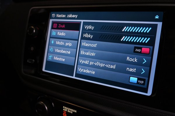 A 8 colos, érintőképernyős központi rendszer grafikája szép, szlovák lokalizációja is jól sikerült, a lehetetlen betűket is szépen kiírja és egész gyors. Persze a felszín alatt ugyanolyan, és ugyanúgy is működik, mint a Volkswagené, két különbséggel: az óracsoport közepén lévő kijelzőn nem függőlegesen, hanem vízszintesen lapozunk, magán a képernyőn pedig igazán innovatív módon mozgunk: két ujjal!