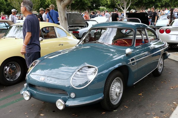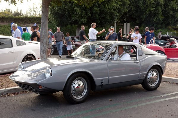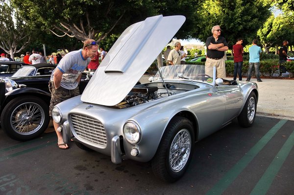 Átlépve Lamborghinik és Ferrarik tengerén egy furcsa AC Ace-hez érek, de valami nem stimmel vele, túl kicsi, túl lapos, bár ahogy kinyitják az elejét, látom, ebben is V8-as motor van. De valahogy az sem egy 427 köbincses... Hogyan is stimmelne bármi, hiszen ez nem angol autó, hanem olasz, szintén 1953-tól gyártották, akár az eredeti, angol AC Ace-t (igaz, abban akkor még sorhatos motor volt, és semmi köze nem volt Amerikához). Ennek Siata 208s a neve, igazi autóínyenc polcról levett enciklopédiája jó eséllyel itt nyílik ki talán a legkönnyebben. Szép ívű karosszériája alatt a Fiat 8V mechanikája lapul, tehát nyolchengeres, 132 lóerős, kétliteres motor hajtja. 53 példány készült belőle, és az RM árverésén nemrég közel egymillió dollárt adtak egy ilyenért, igaz, annak az első tulajdonosa Steve McQueen volt - igaz, már ő is használtan vette. Már McQueen-i magasságokat az itt álló nem tud, de azért ez is megéri a felét.