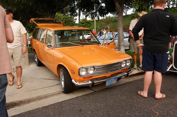 A sztár ezen a hétvégén a Nissan Bluebird hetvenes évek eleji szériája volt, találtam belőle narancssárga kombit csodásan restaurálva, horpadt, agyontuningolt, kétajtós szedánt, tisztességben megőszült négyajtóst, felmatricázott pályaversenyautót és B oszlop nélküli, lemattult kupét is.